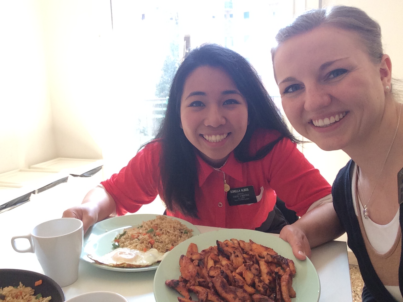 | "They made a delicious Peruvian dish with potatoes, eggs, lettuce, and a delicious sauce. I don't know how to spell it." |